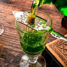 An incredibly strong spirit, rumored to have psychoactive effects. Known as La Fée Verte, or the Green Fairy, this anise-flavored liquor is served the traditional way - with ice cold water slowly dripped into a glass containing the absinthe. This creates a cloudy mixture that almost seems to glow.